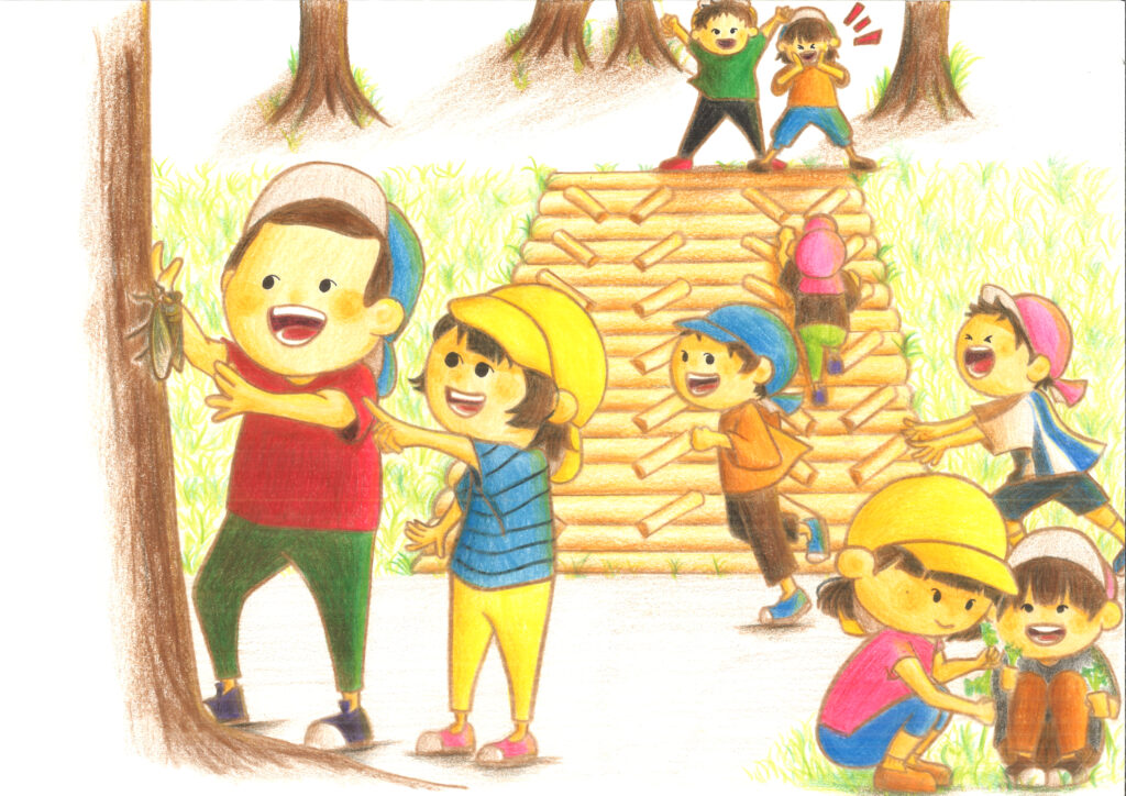 絵を描くことが得意な先生が描いてくれた、園庭の風景です。得意なこと好きなことを活かして、お仕事をしています。