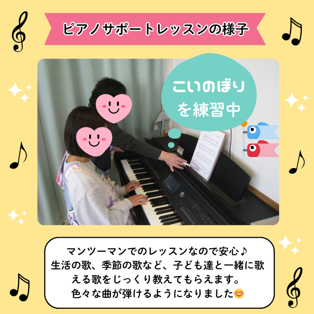 入職2年目までの希望者に向けい、ピアノサポートレッスンを実施しています。お昼休みの時間を使って、スキルアップでき、保育の引き出しも広がります。